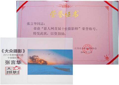 近日,我公司市場推廣部張言華榮獲江蘇省企業(yè)攝影家協(xié)會頒發(fā)的“影人網(wǎng)”首屆十佳攝影師稱號。張言華利用業(yè)余時間從事攝影創(chuàng)作,短短時間內(nèi)取得了令人矚目的成績,其現(xiàn)為中國攝影家協(xié)會會員,中國藝術(shù)攝影學(xué)會會員,大眾攝影2012年網(wǎng)絡(luò)十佳攝影師,近年來有近30部作品在《大眾攝影》《中國攝影雜志》《中國攝影報》等國家級期刊獲獎發(fā)表,代表作有《北國風(fēng)光》、《都不理我》、《秋》、《春花似夢》、《歲月》、《雨季》、《金色的樂章》、《冰城》、《陽光女孩》、《曾經(jīng)滄海》、《廣場魅影》、《早市》、《夢里雪鄉(xiāng)》、《雨中漫步》、《冬眠》、《待》、《老道外》、《市場》、《夢幻荷塘》、《海邊》、《霧之韻》、《雪域晨光》、《松花江邊》、《海濱浪漫曲》等。其中《炫冰之魅》系列作品刊登在中國攝影報2014年1月14日佳作欄目。