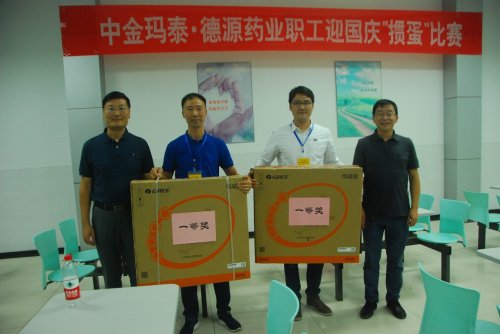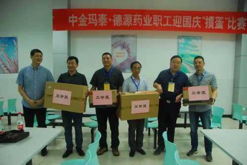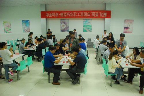 為慶祝中華人民共和國成立69周年929日,中金瑪泰·德源藥業職工迎國慶“摜蛋”比賽在德源藥業舉行。本次活動雙方各選派出8組選手參加了比賽。