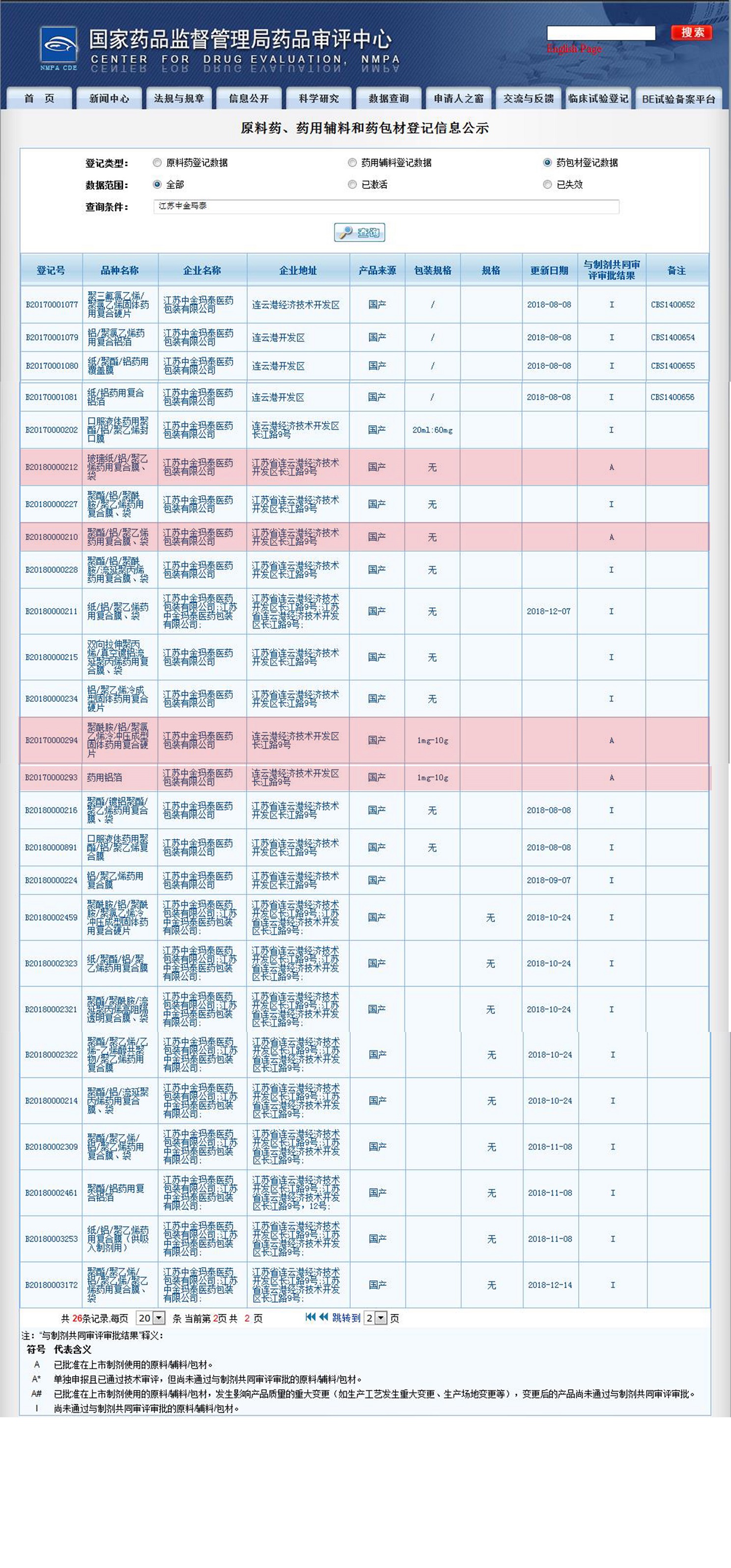 近期,CDE登記平臺對公示的“與制劑共同審評審批結果”一欄進行了更新, 我公司公示的26個產品中,4個產品狀態顯示由I更新為A,意味著這4個產品已通過共同審評,獲準在關聯的新上市制劑中使用,分別是:B20170000293藥用鋁箔、B20170000294聚酰胺//聚氯乙烯冷沖壓成型固體藥用復合硬片、B20180000210聚酯//聚乙烯藥用復合膜袋、B20180000212玻璃紙//聚乙烯藥用復合膜袋,已獲批準的數量在行業內處于領跑地位。